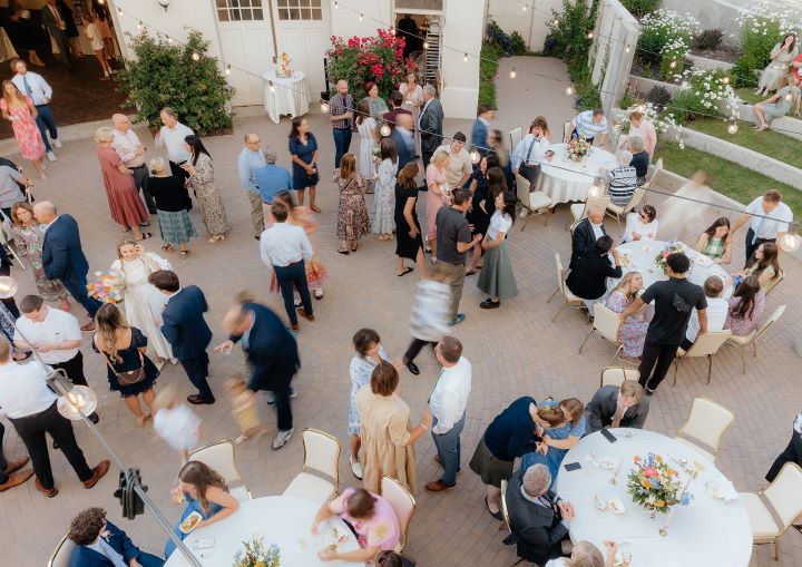 Outdoor space ideal for cocktail hour, receptions, and energetic gatherings.